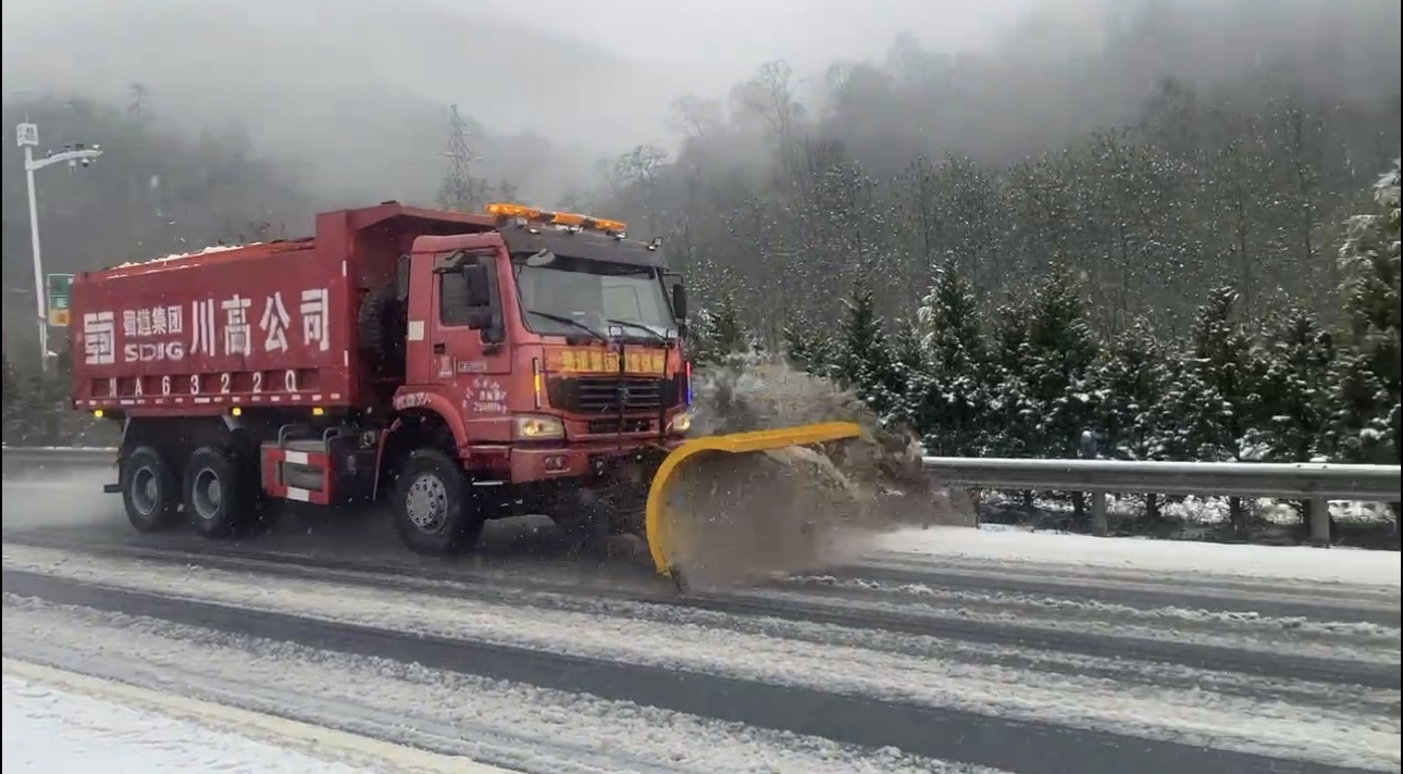 11月24日,受冷空气影响,雅西高速拖乌山路段迎来今冬第一场雪,面对寒潮的侵袭,雅西公司干部职工秉承着对人民群众高度负责的态度,全面部署、除冰雪、保畅通、重值守、守安全相关工作有序开展。一是主要领导全面部署,工作群迅速开展安排部署,要求各部门和管理处高度重视,提前转入冬管状态,做好值班值守和除冰除雪,全力保通保畅,确保安全畅通;二是加强巡视预警,迅速启动预案。11月24日08:10分经监控人员轮巡发现拖乌山顶开始降雪,09:20分栗子坪路安大队巡查至K2100处发现路面有积雪,并且气温最低0-1℃、最厚积雪达4厘米,09:40分巡查至山顶发现雪逐渐变大后立启动联勤联动通知高速交警和高速执法,同时通知路安大队清排障预防性撒布融雪剂和远端情报板提示;三是交通管控远端分流,联勤“一路三方”(2+1+1巡查模式)联勤巡查,现场会商,科学启动除冰除雪响应开展交通管控工作。雅西高速双向主线开展分流所有车辆,个别收费站关闭入口通道;四是畅通消息渠道,及时发布相关信息。通过工作群通知、沿线情报板、新媒体发布等方式,宣传工作落实到位,做到及时有效地通知群众道路交通管控消息,提醒广大群众合理安排出行;五是加强值班值守和信息报送,公司制定冬季值班表,严格落实预警信息30分钟内直接传递到一线单位,加强预警信息,突发信息的上报、互通,对重大气象预警第一时间上报,严禁迟报、漏报、瞒报和隐瞒不报;六是加强暖心服务,为雪天滞留车辆和人员送去暖心关怀,安抚情绪同时为需要的群众发放应急物品,妥善安排需要帮助的驾乘人员,帮助他们解决防寒抗冻面临的实际困难。