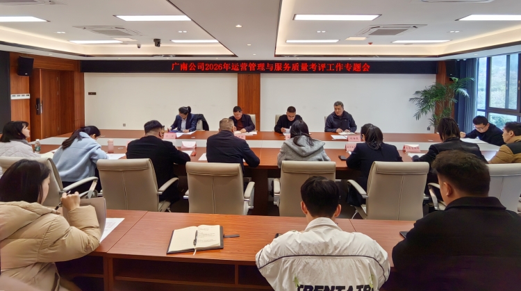 为推动公司运营管理与服务质量考评工作提质增效,3月17日,广南公司组织召开2026年运营管理与服务质量考评工作专题会。会议由公司副总经理刘海泉主持,公司党委副书记、董事、总经理张忠林出席会议并讲话。公司党委委员、副总经理、工会主席赵维平,副总经理李佳,相关部门、管理处负责人及工作人员参加会议。