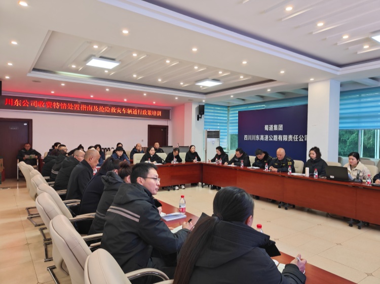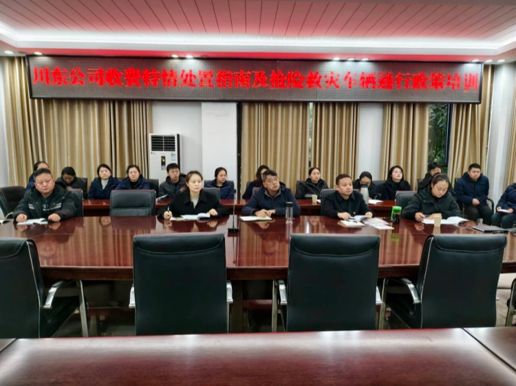 为深入贯彻收费站特情处置及抢险救灾车辆放行要求,精准破解一线业务痛点、难点,川东公司采取“先学先行、以点带面”模式,先期选派收费、稽查骨干参加高管局专项培训,系统掌握政策核心要义。为确保政策要求高效落地,12月16日,公司以视频会议形式开展专项培训,全面强化一线员工政策执行力与实战处置能力,为收费稽查工作提质增效筑牢根基。