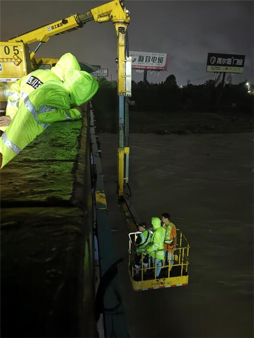 8月11日16时左右,成绵高速公路K1757+250青白江大桥下游200米处河堤被洪水冲刷,出现局部垮塌。17时左右,河堤水毁加剧,护坡垮塌超过150米,距离青白江大桥桥台仅40余米。高速交警、交通执法、成绵公司及广汉市地方有关部门在广汉收费站召开应急抢险工作会,确定了抢险工作方案并立即开展抢险工作。当晚,成绵高速新都至金山站、城北站、一绕匝道关闭。