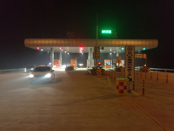 2016年9月13日零时,达万高速磐石收费站正式开通运营。该收费站属于匝道收费站,共设6条(3进3出)收费车道,其中人工(MTC)收费车道2进2出,ETC车道1进1出。