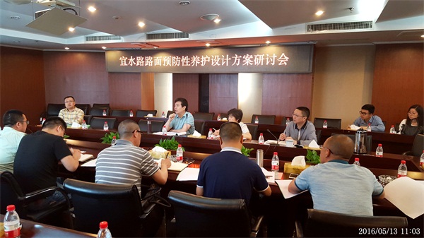 为确保宜水路路面预防性养护工程的顺利推进,尽快完成路面病害处治,5月13日,川南公司副总经理王淑元主持召开了宜水路路面预防性养护工程初设方案研讨会,川高公司副总经理郜进良到会指导。川高公司养护部经理金丽、副经理罗锡洪,川高咨询公司、中交院及公司相关人员参加了会议。